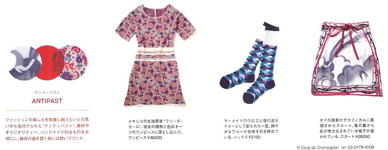 ANTIPAST是由來自日本的兩位女性設計師Junko Jinushi與Kyoko kato所組成。